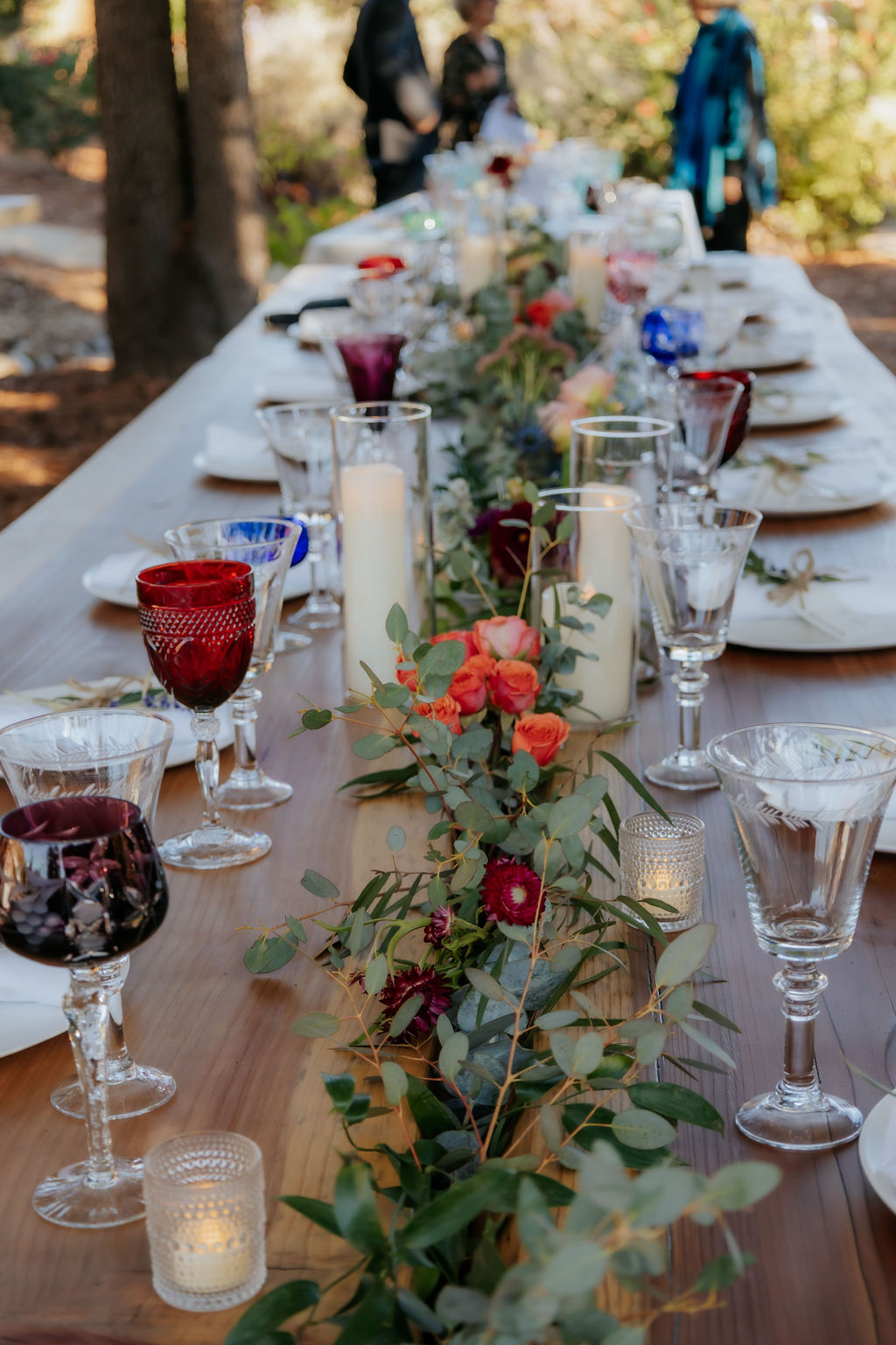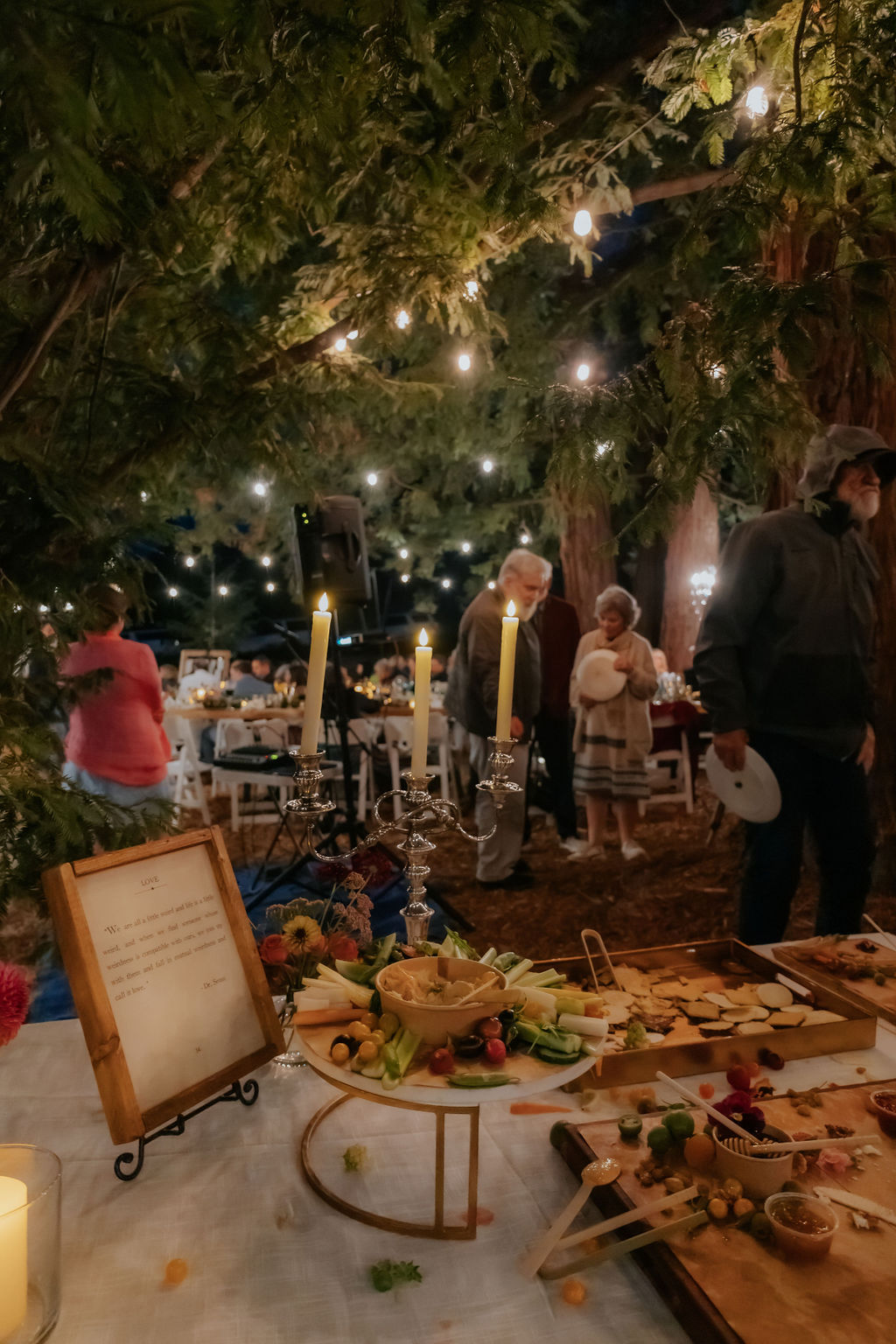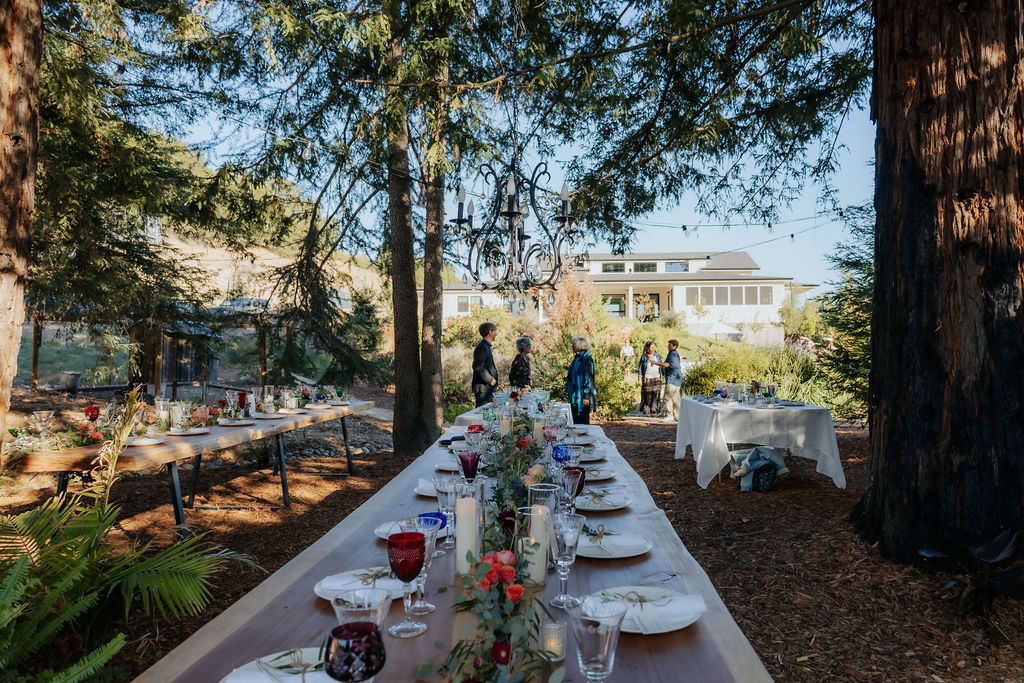 The lawn and patio are perfectly situated for cocktails during golden hour, and string lights set among the towering redwoods add a special touch for dinner under the stars.